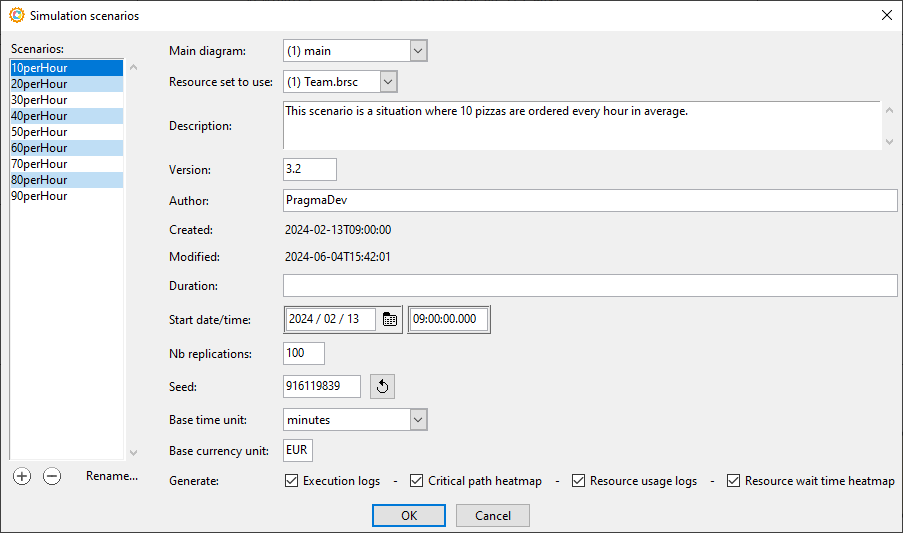 In the example below we will explore 9 scenarios of a pizza delivery process. The only variation is the number of pizza orders per hour.